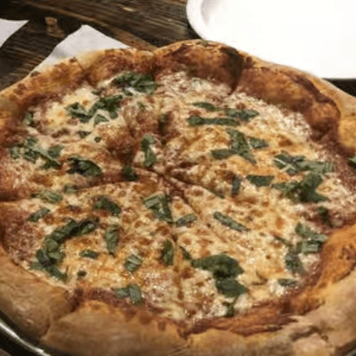 Our margherita pizza is topped with basil, fresh mozzarella, olive oil, pizza sauce